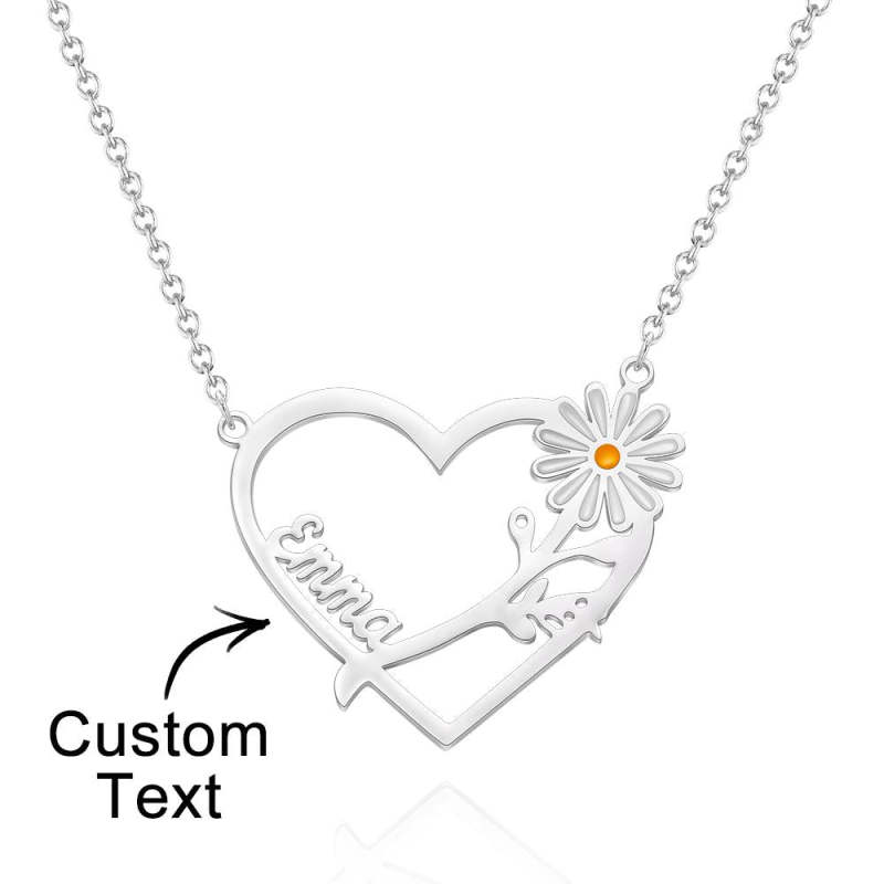 Custom Engraved Necklace Daisy Heart-shaped Name Necklace Gift for Her