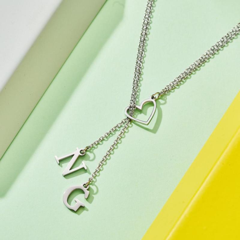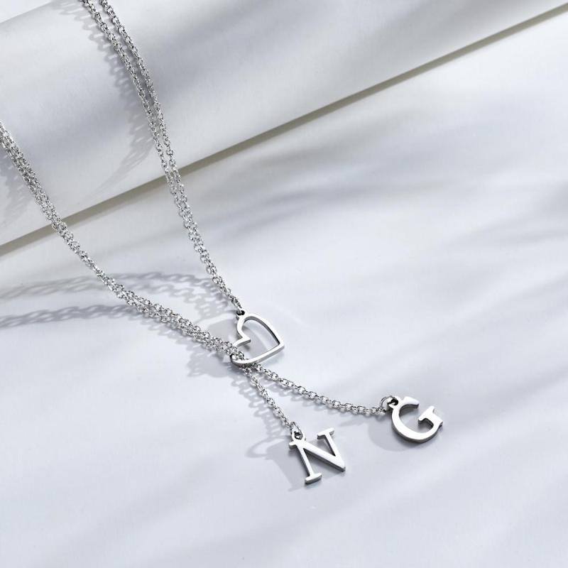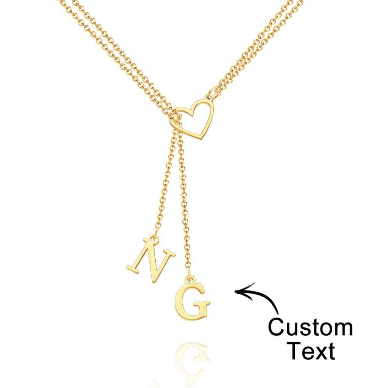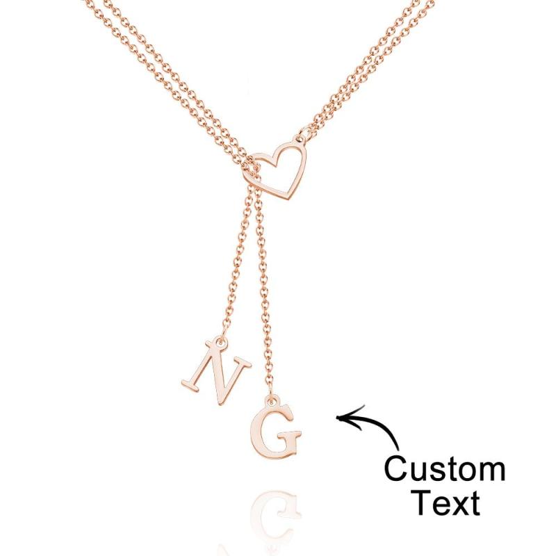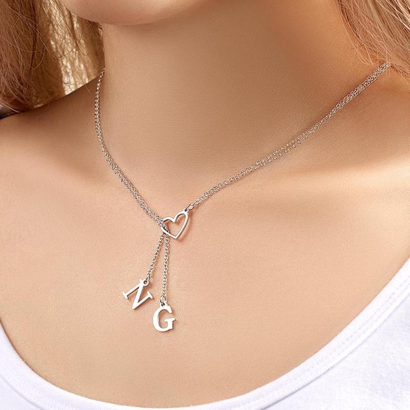 Custom Engraved Necklace Heart Shaped Letter Necklace Gift for Her