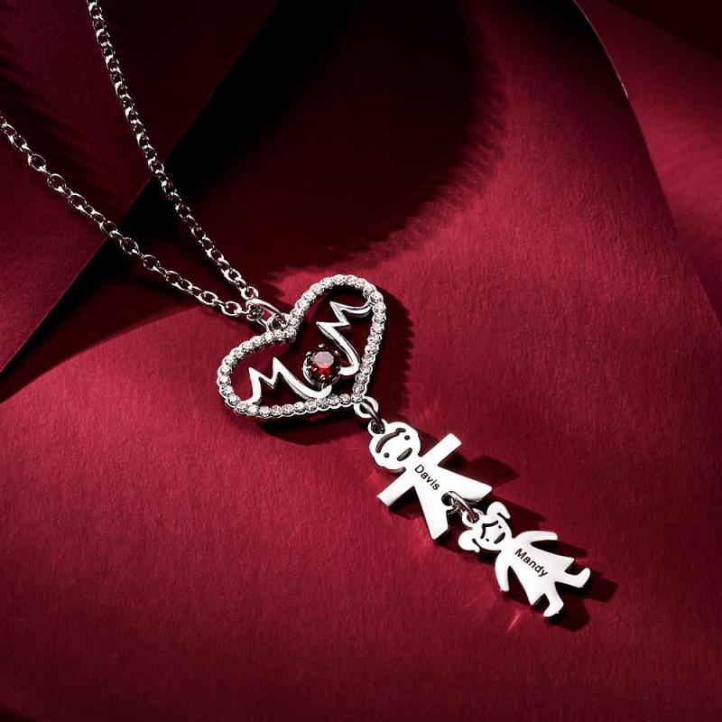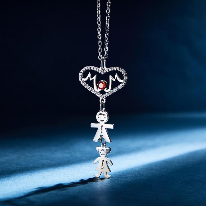 Custom Engraved Necklace Heart Shaped Mother with Child necklace Gift for Mom