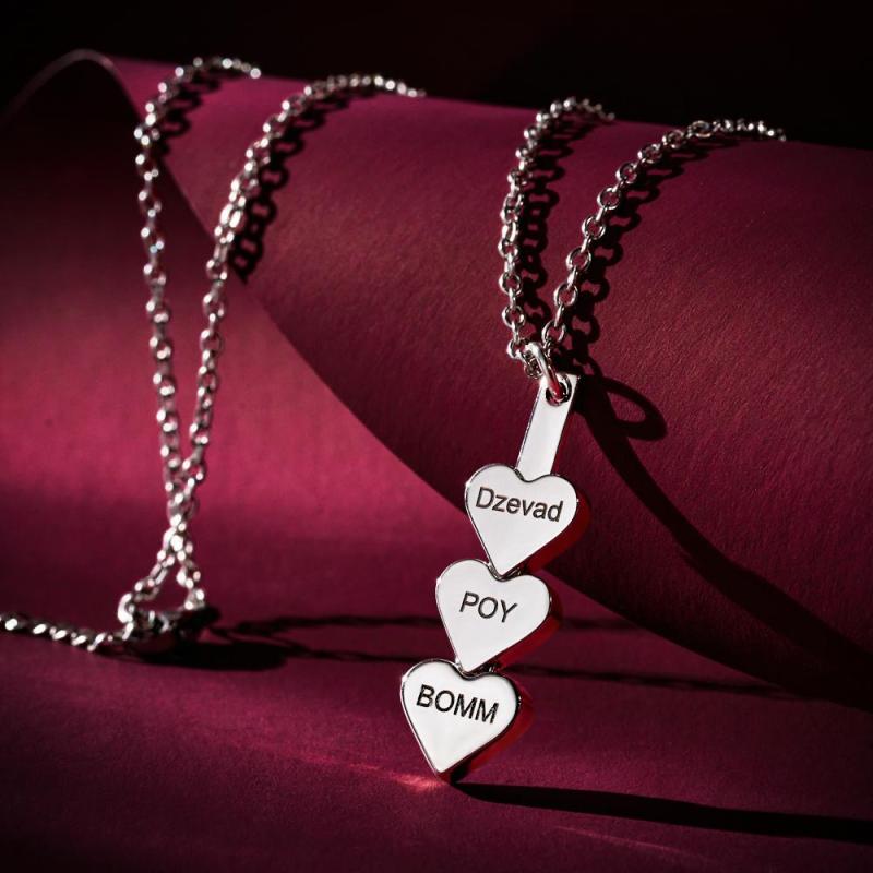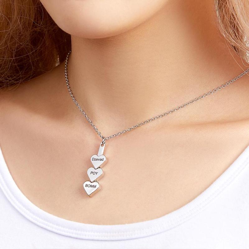 Custom Engraved Necklace Peach Heart Stitching Necklace Gift for Her