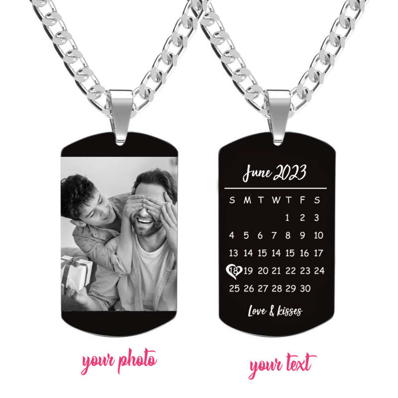 Custom Engraved Photo Necklace Photo And Date Perfect Gift For Dad On Father's Day