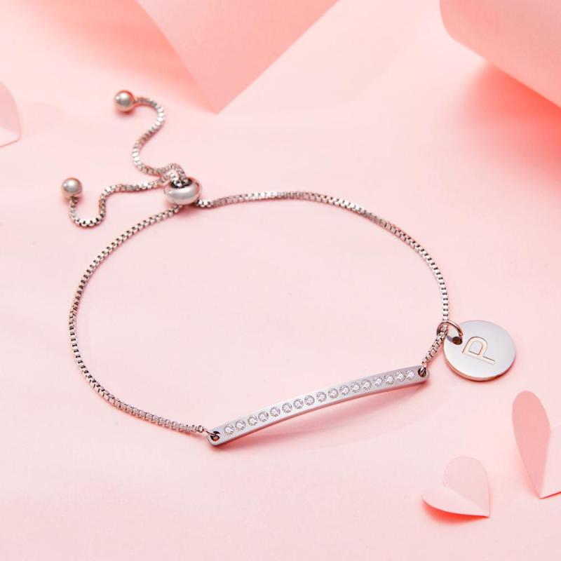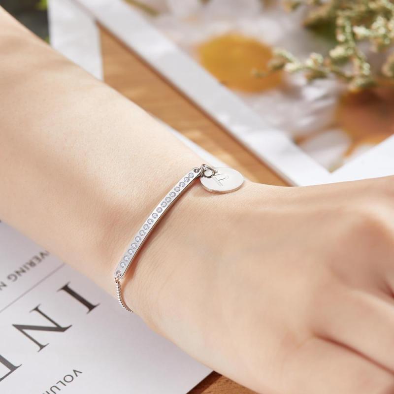 Custom Engraved Rhinestone Bar Bracelet Bracelet With Letter Gift for Girl