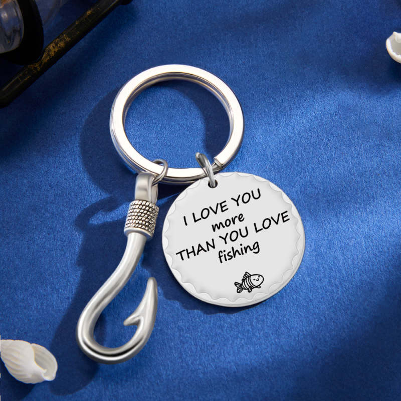 Custom Fishing Hook Keychain Personalized Metal Key Ring Father's Day Gifts
