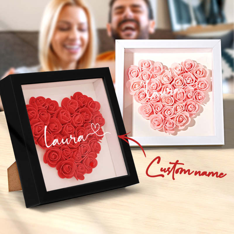 Custom Flower Shadow Box Personalized Name Flower Shadowbox Frame Gift