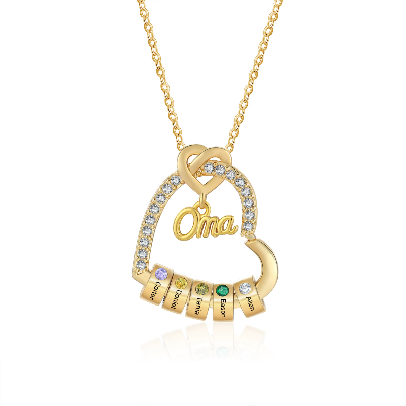 Custom Heart Necklace for Mom Personalized Mother's Heart Necklace Family Names & Birthstone Jewelry