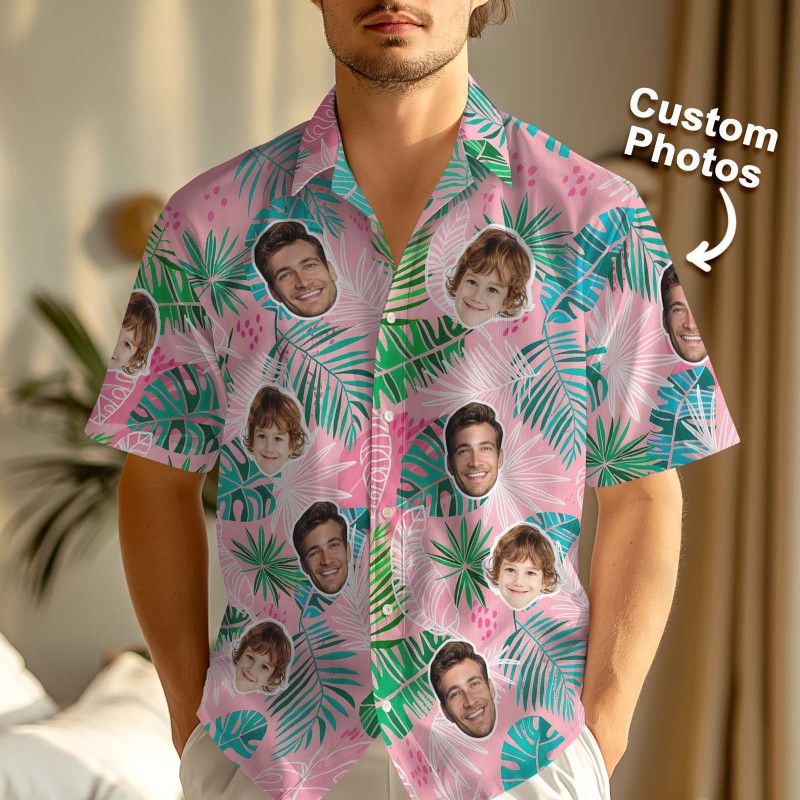 Custom Leaves Hawaiian Shirt Personalized Face Print Shirt Perfect Gift For Him