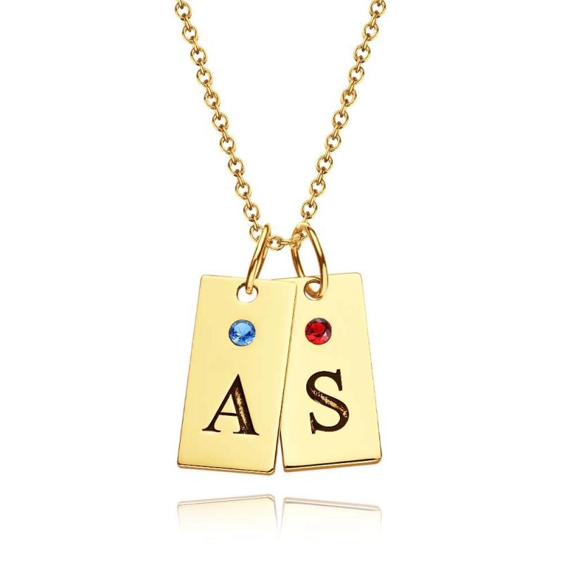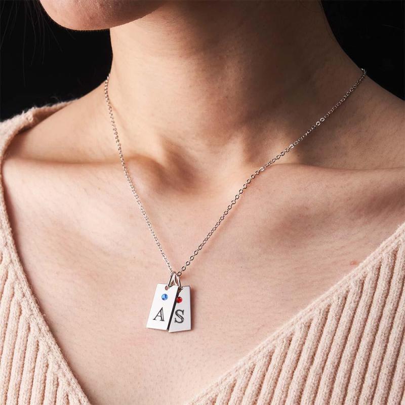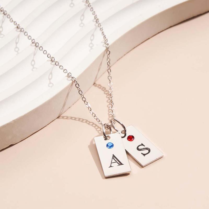 Custom Letter Birthstone Necklace Personalized Exquisite Initial Tag Pendant For Her