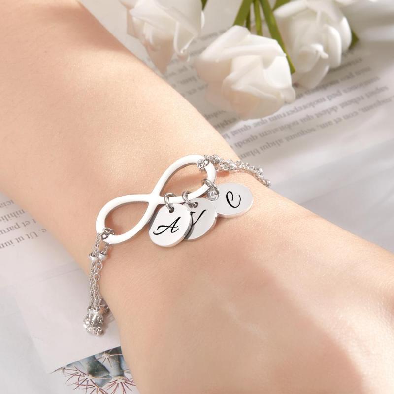Custom Letter Bracelet Personalized Engraved Bracelet Infinity Love for Her
