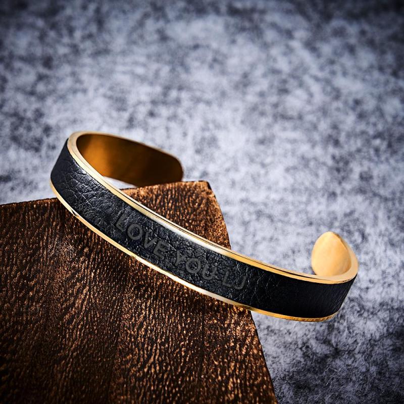 Custom Man Leather Bracelet Personalized Vintage Stainless Steel Adjustable Bracelet