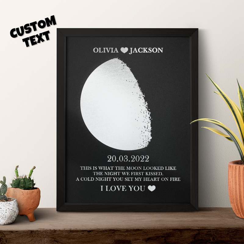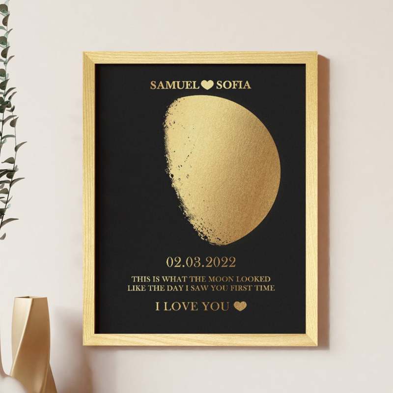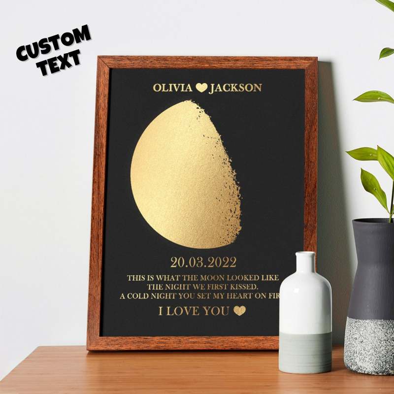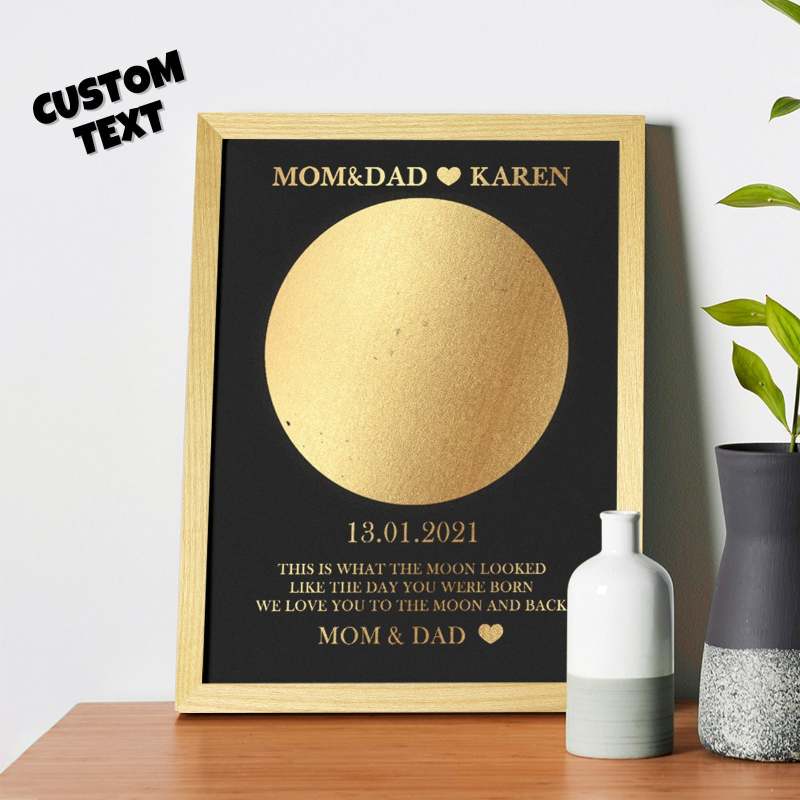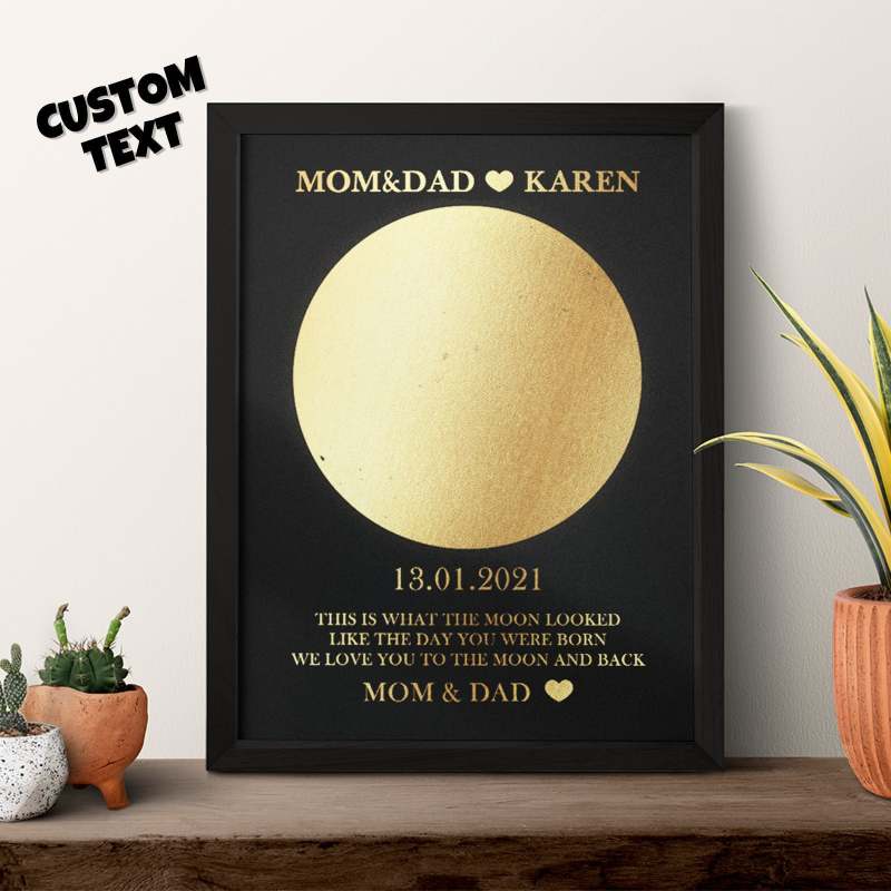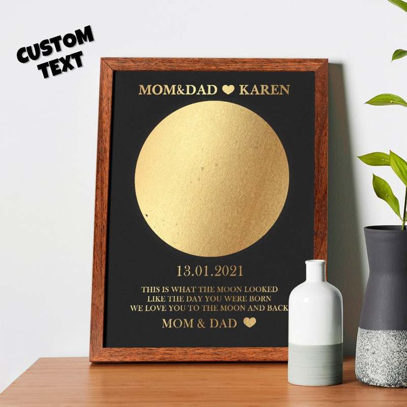 Custom Moon Phase Foil Print Wooden Frame Personalized Name and Text Family Gift