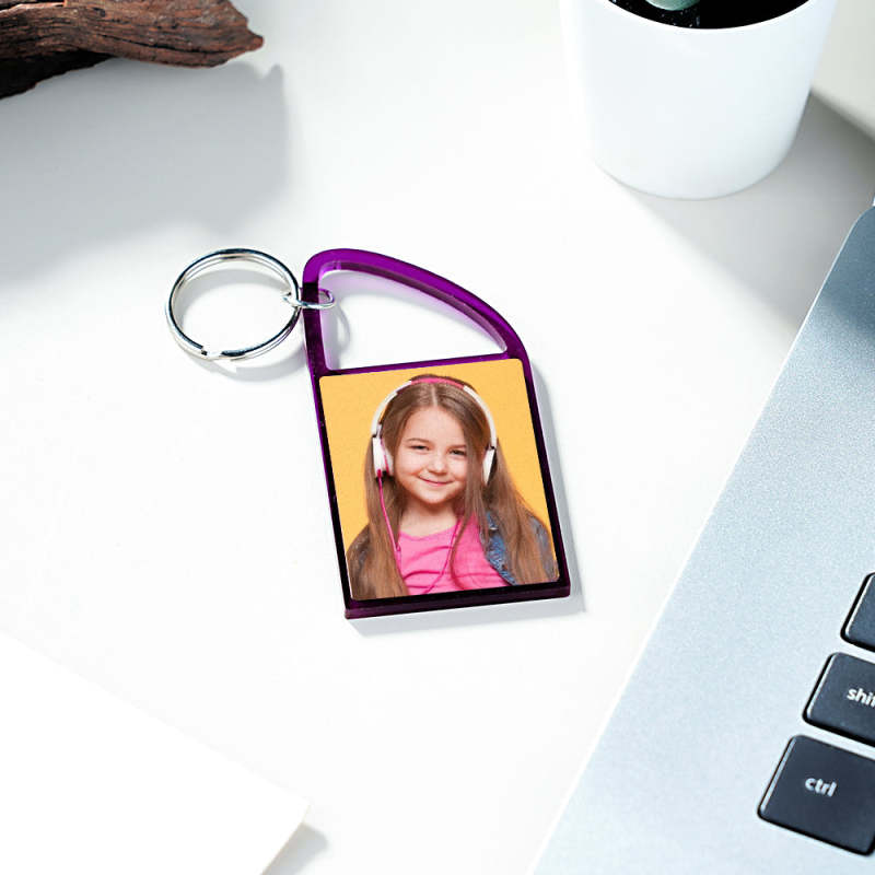 Custom Multicolor Snap-in Photo Carabiner Keychain WIth Text