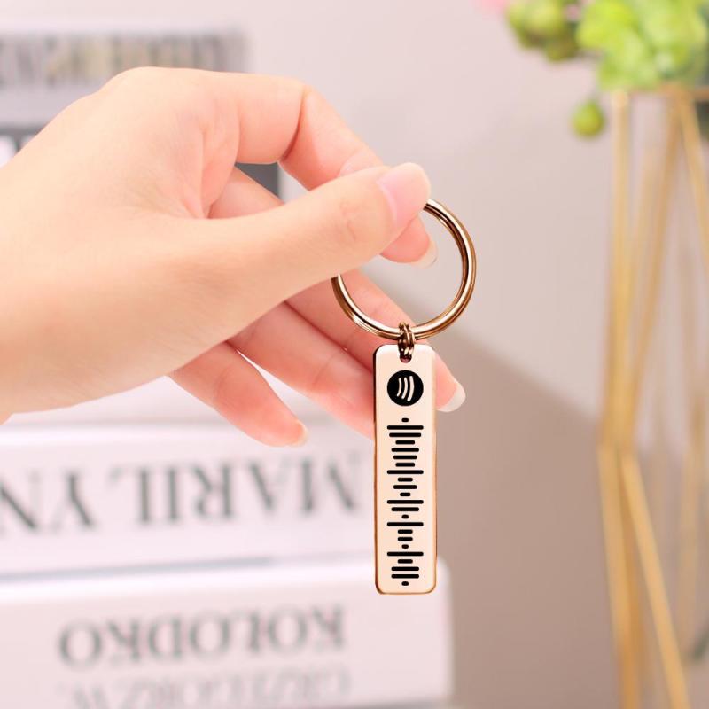 Custom Music Spotify Plaque Code Keychain Stainless Steel Rose Gold