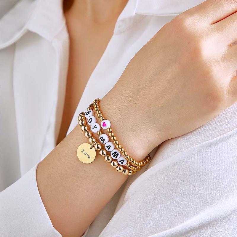 Custom Name Bead Bracelet Heart Stack Bohemia Style Gift for Her