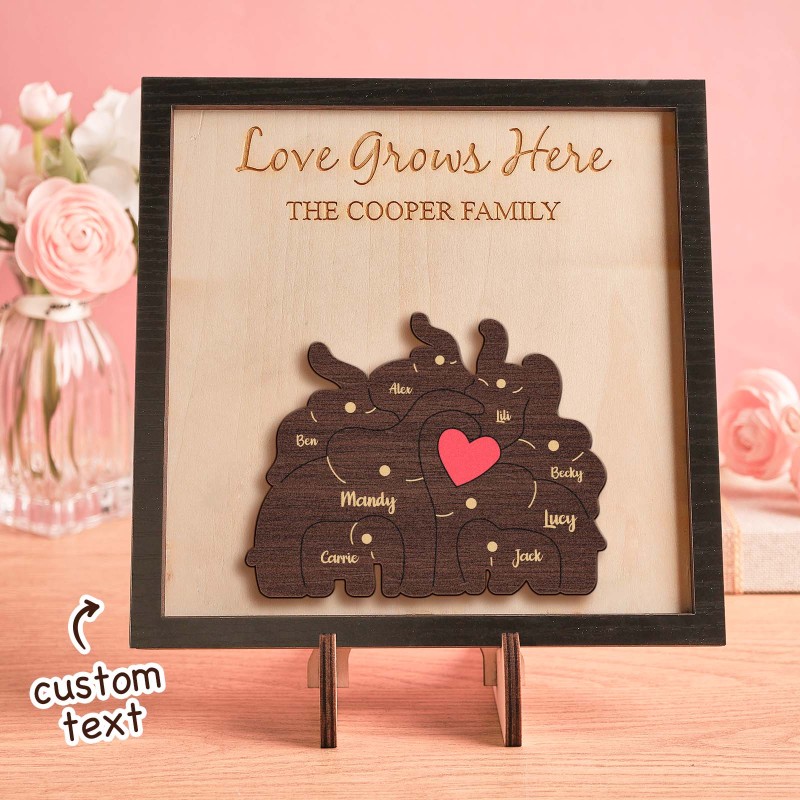 Custom Name Elephant Family Puzzle Wooden Frame Personalized Wooden Home Decorations Motther's Day Gift