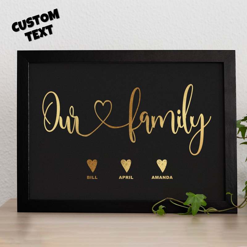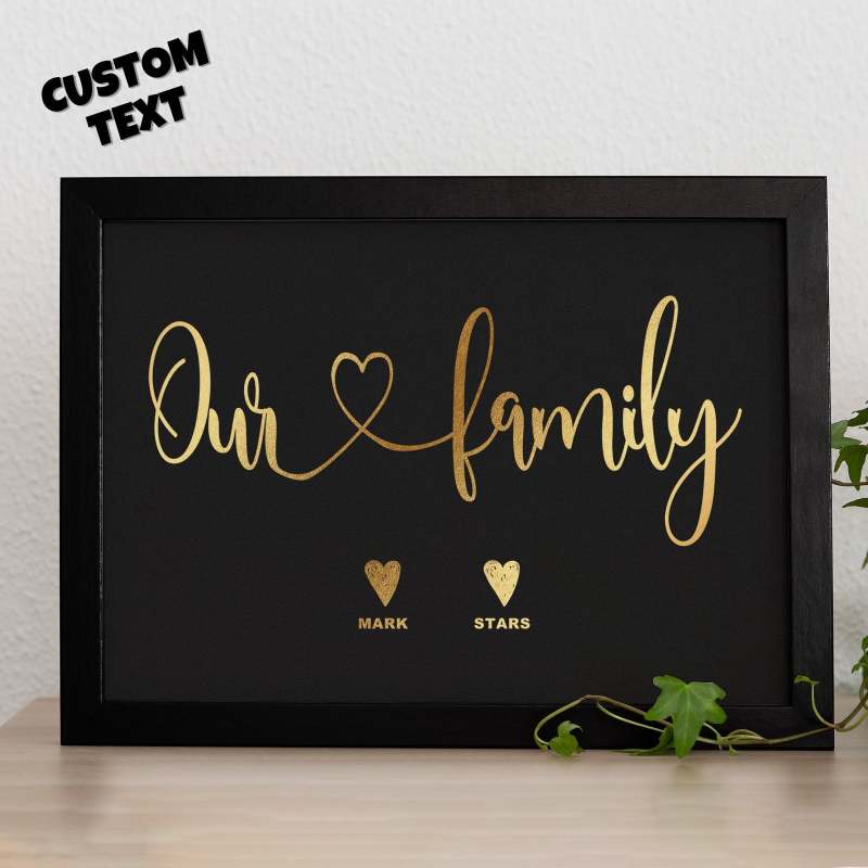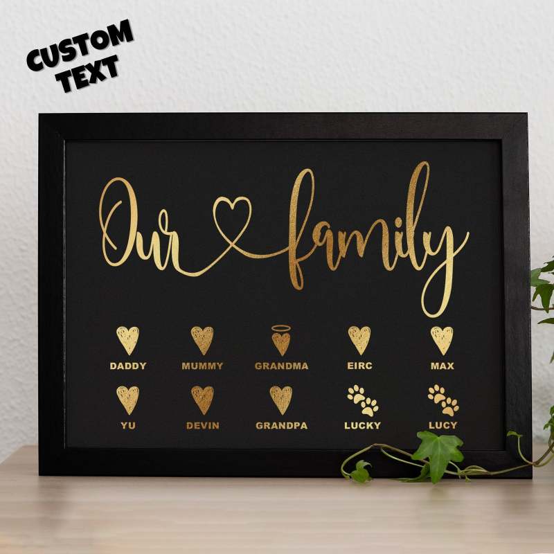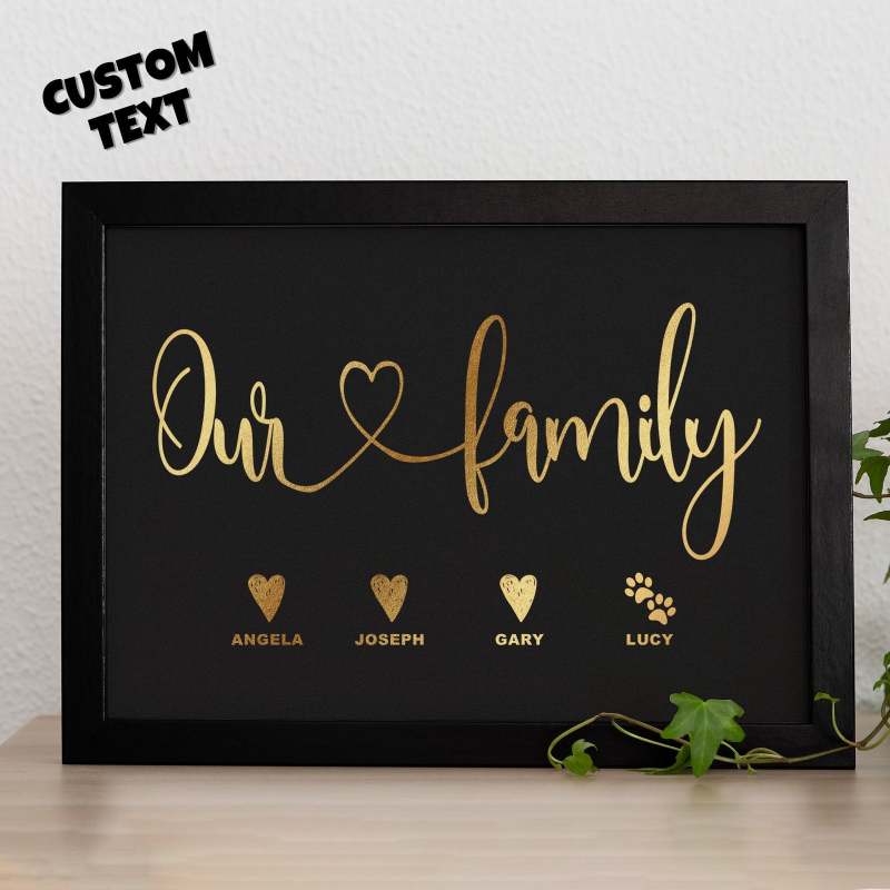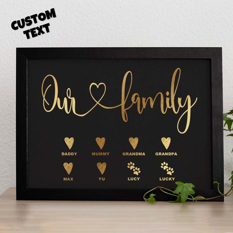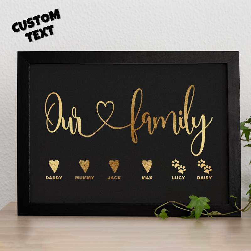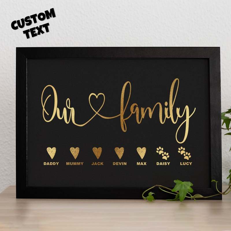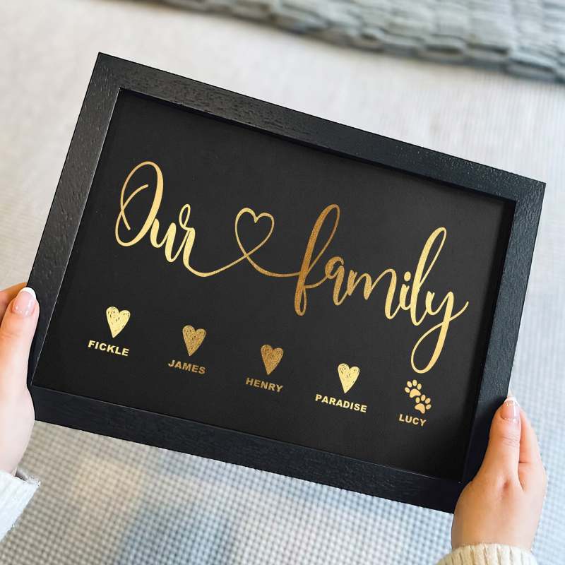 Custom Name Metallic Foil Print Wooden Frame Personalized Name With Heart Or Paws Family Gift