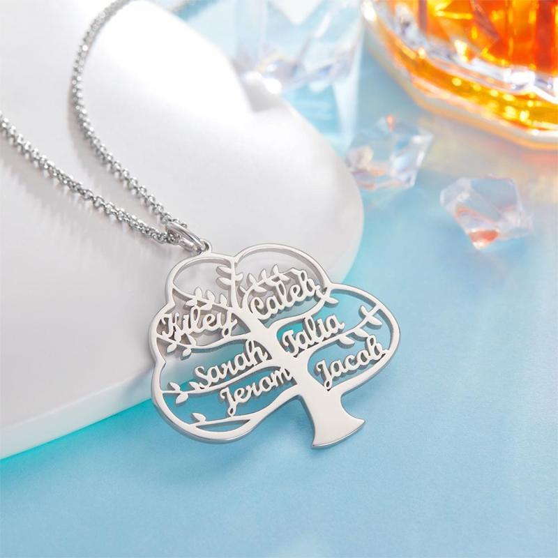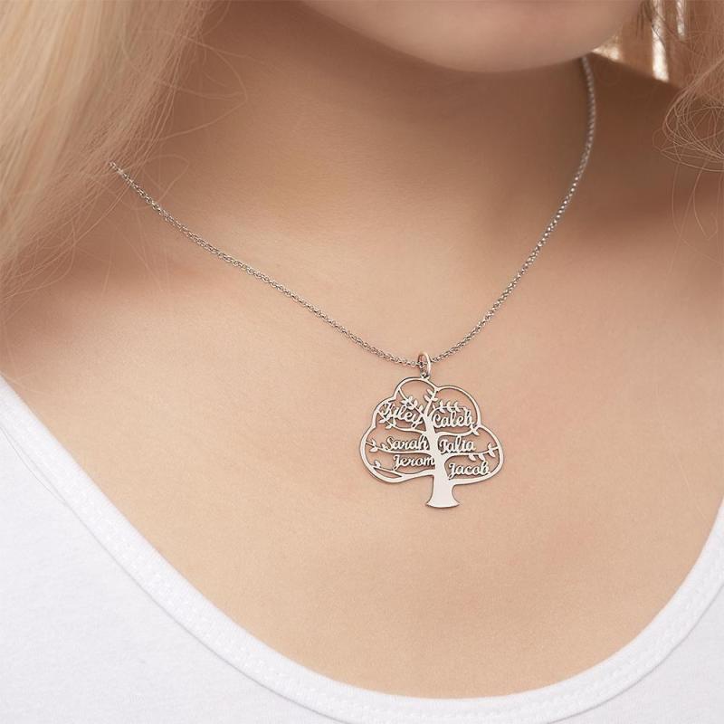 Custom Name Necklace Family Tree of Life Necklace Name Pendant Memorial Gift Silver 1-6 Names