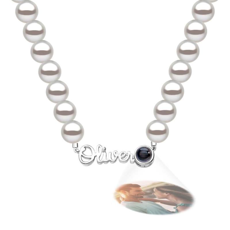 Custom Name Necklace Projection Pearl Chain Valentine's Day Gift