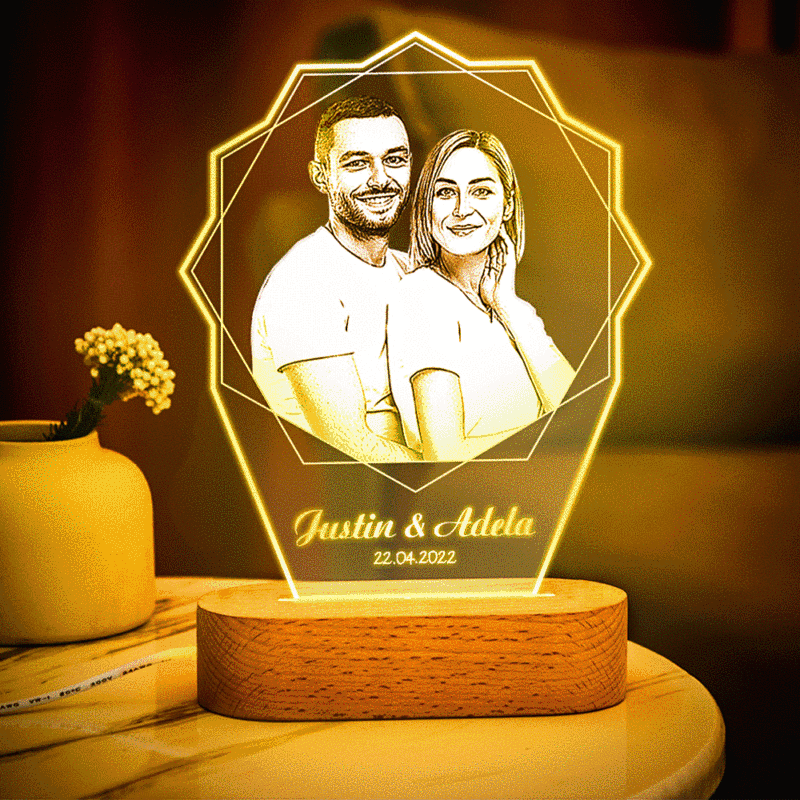 Custom Photo Double Hexagon Lamp Personalized Acrylic Carving Plaque Color Night Light