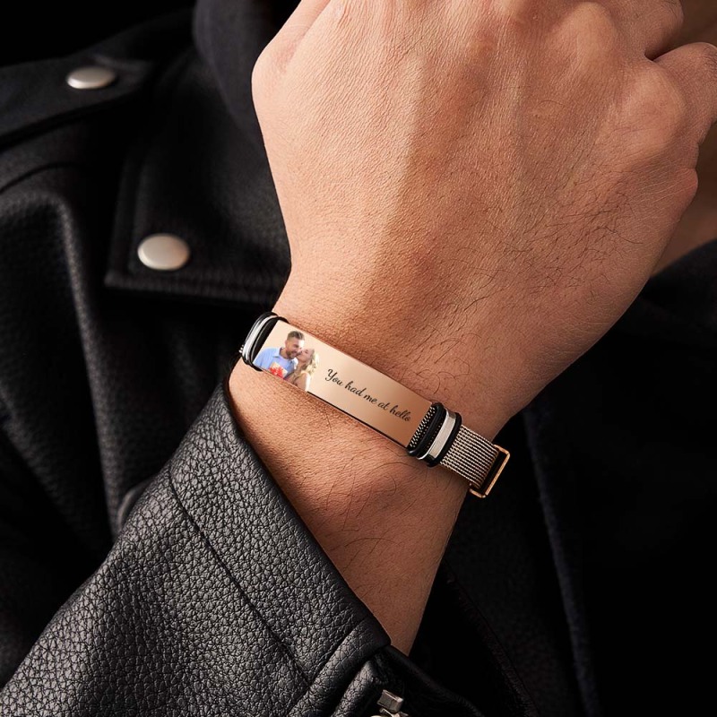 Custom Photo Engraved Bracelet Rose Gold Gift for Wedding Day