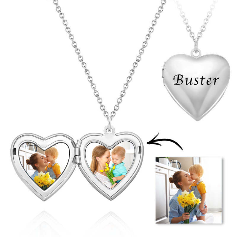 Custom Photo Engraved Necklace Heart-shaped Locket Necklace Creative Gift For Mum