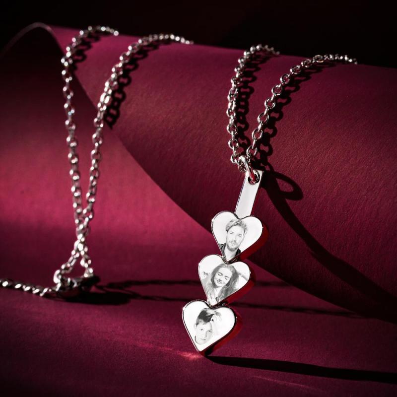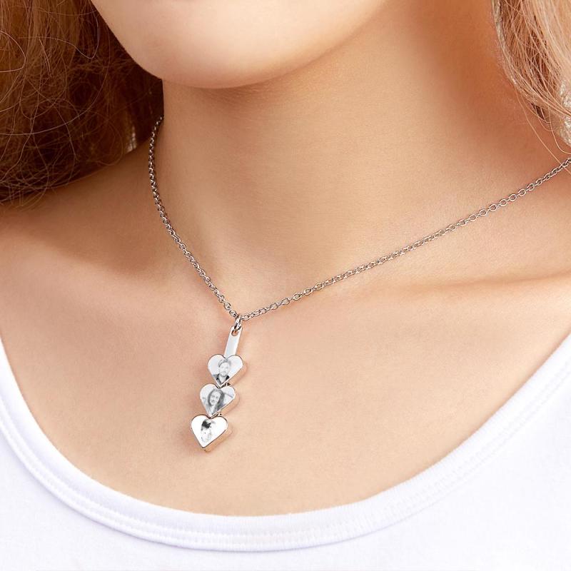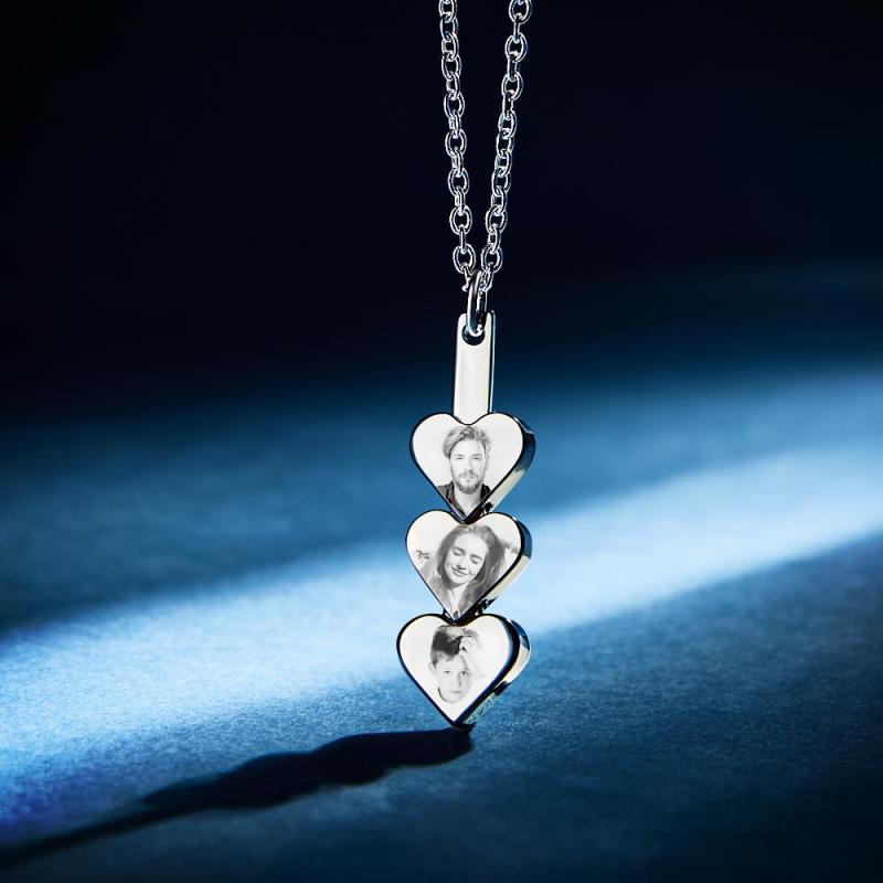 Custom Photo Engraved Necklace Peach Heart Stitching Necklace Gift for Her