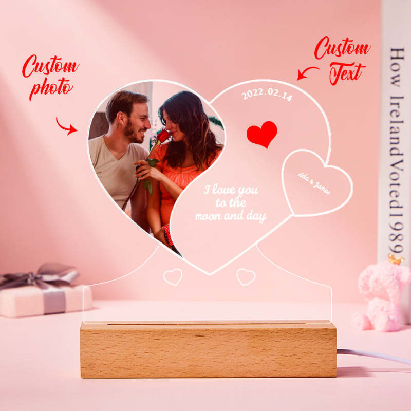 Custom Photo Engraved Night Light Double Heart-shaped Acrylic Lamp Gift for Lover