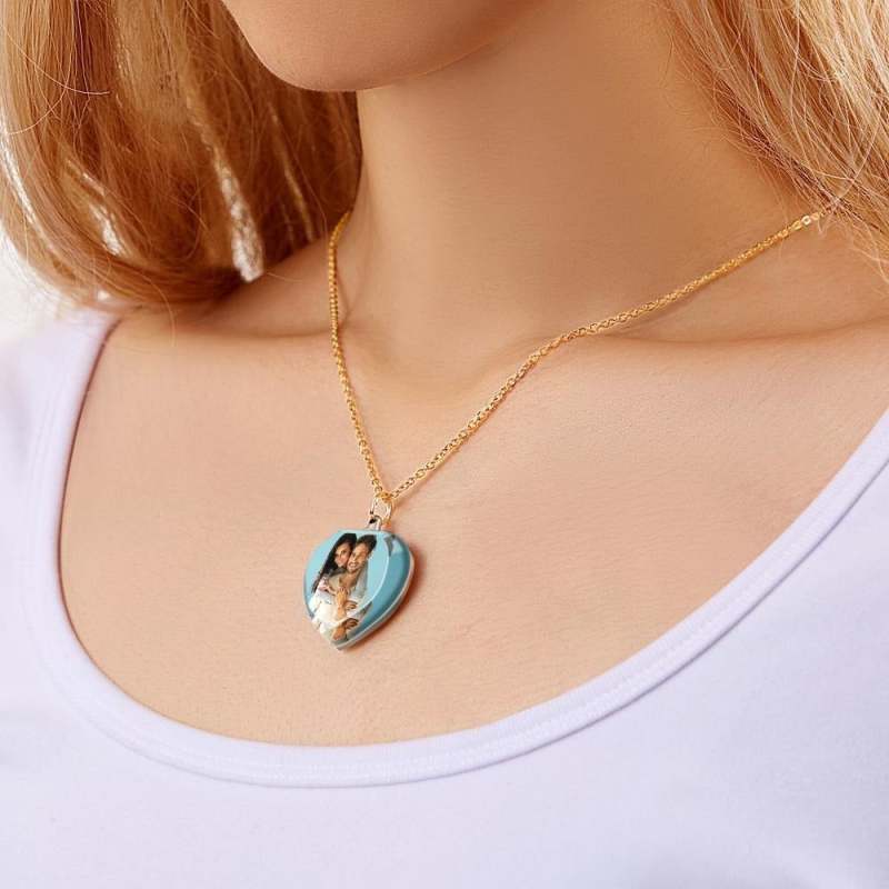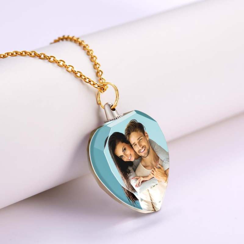 Custom Photo Heart Shaped Crystal Necklace Personalized Charm Pendant Couple's Valentine's Day Gifts
