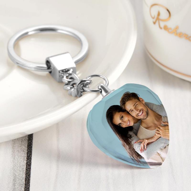 Custom Photo Keychain Crystal Keychain Couple's Gifts Heart-shaped