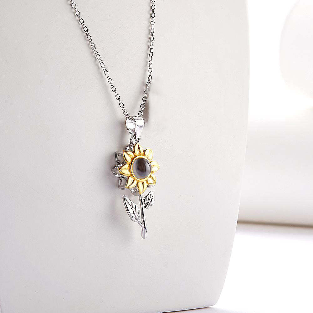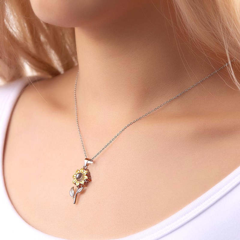 Custom Photo Necklace Sunflower Leaves Creative Gifts
