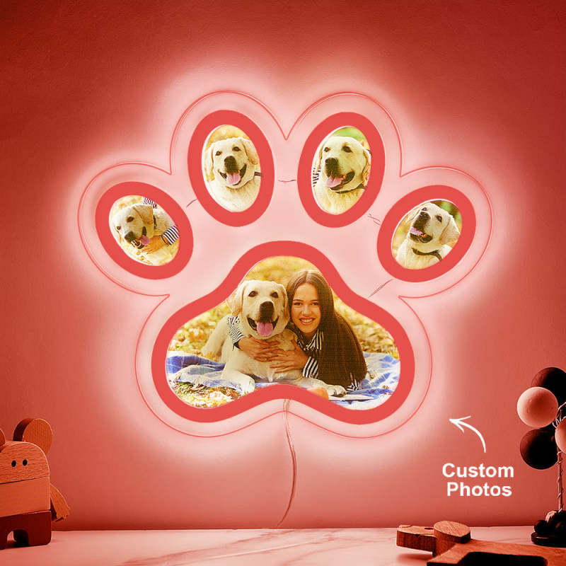 Custom Photo Pet Paw Neon Lamp Personalized Memorial Adjustable Brightness Night Light Gifts For Her
