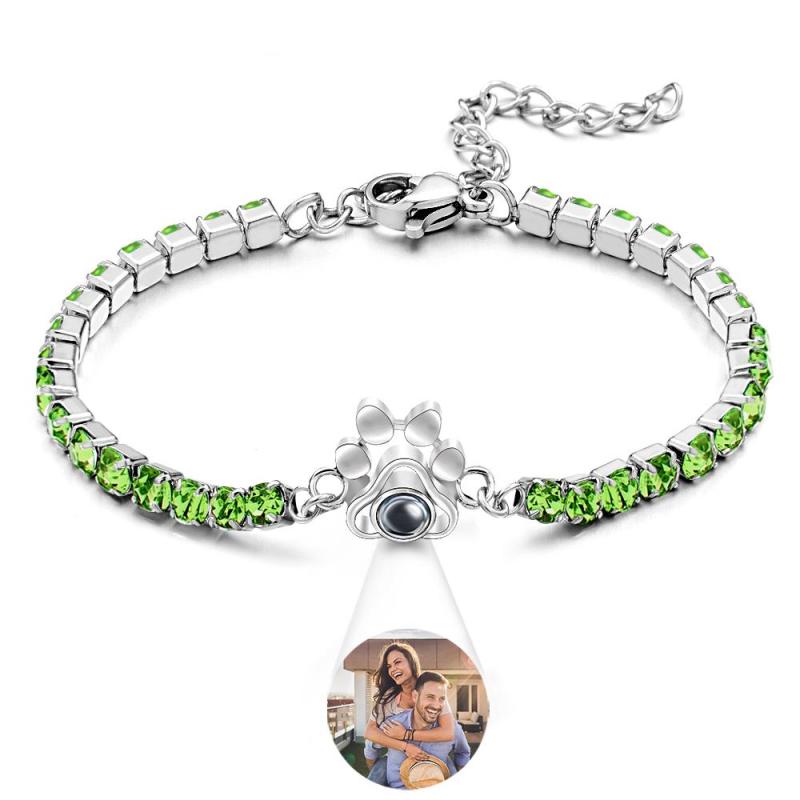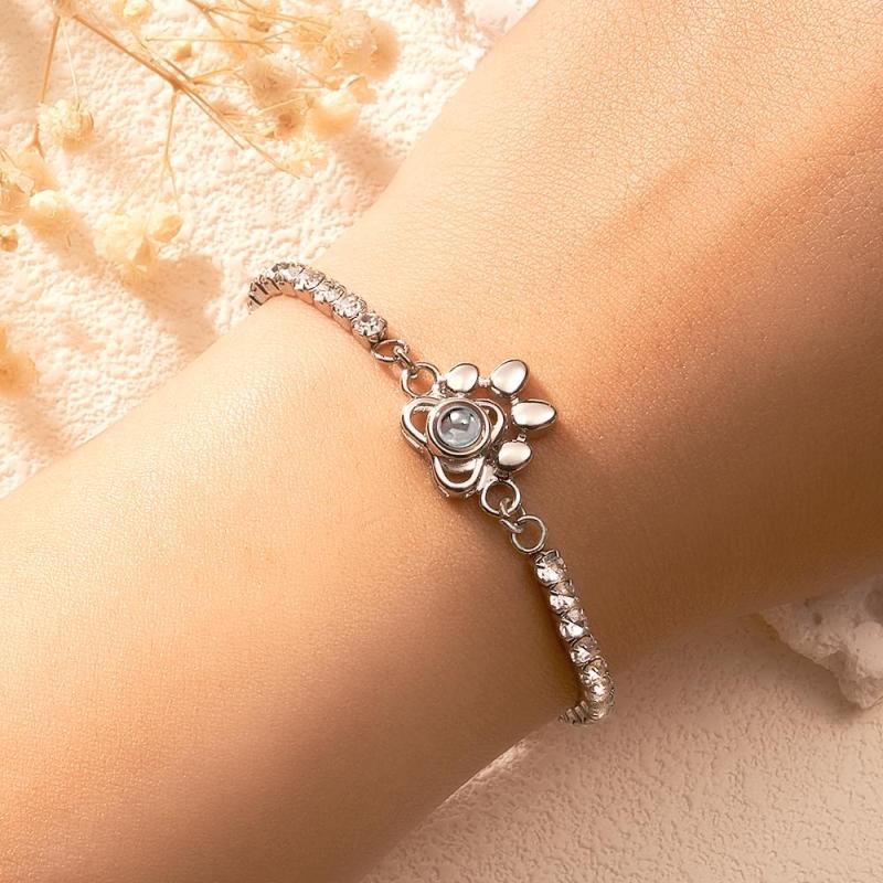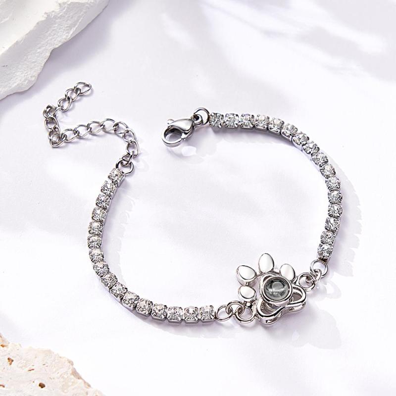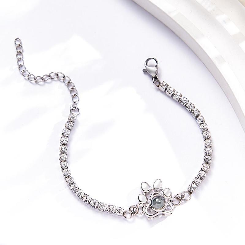 Custom Photo Projection Bracelet Fashionable All Diamonds Pet Paw Theme Charm Bracelet Gifts For Her