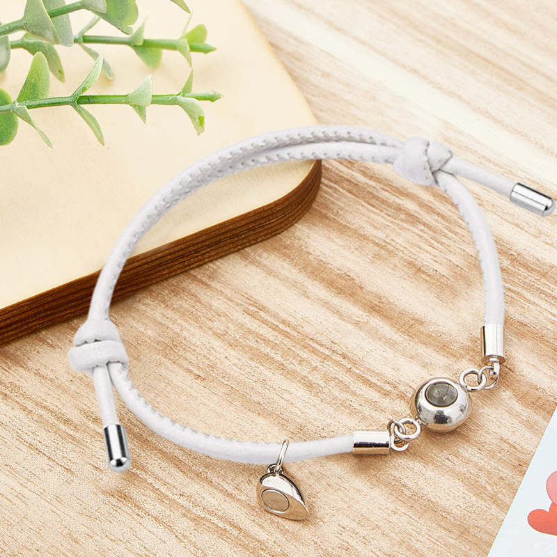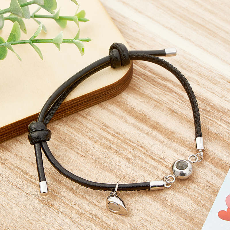 Custom Photo Projection Bracelet Leather Heart Magnetic Bracelet Gift for Couple