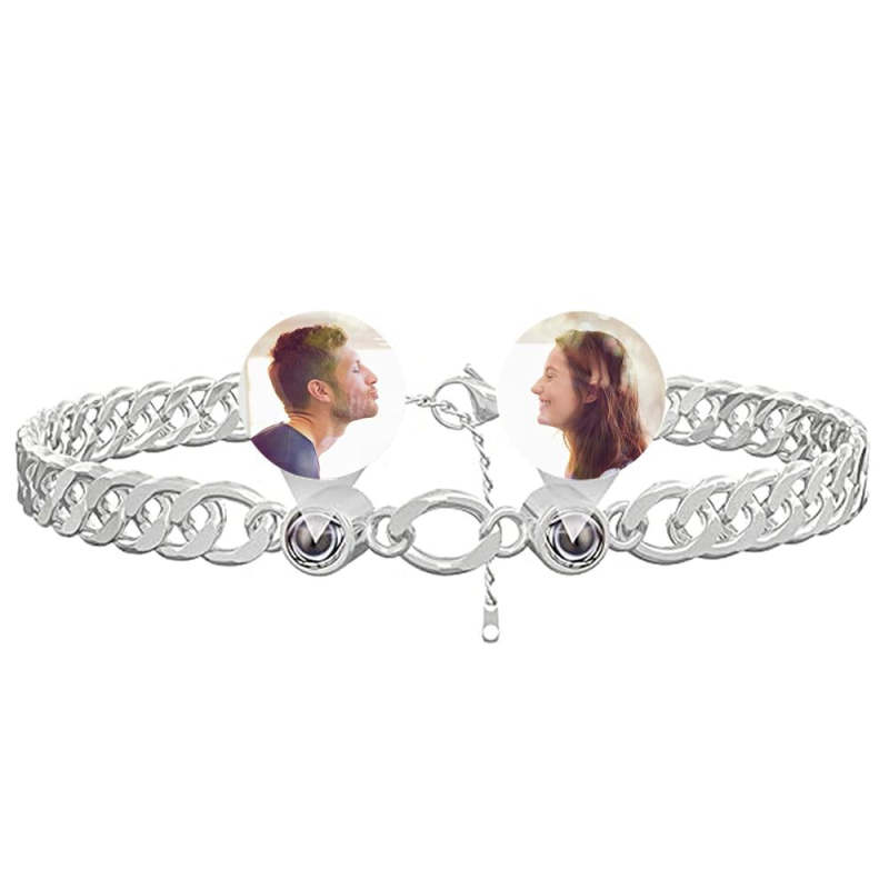 Custom Photo Projection Bracelet Personalized Double Bead Adjustable Bracelet Gifts For Couple