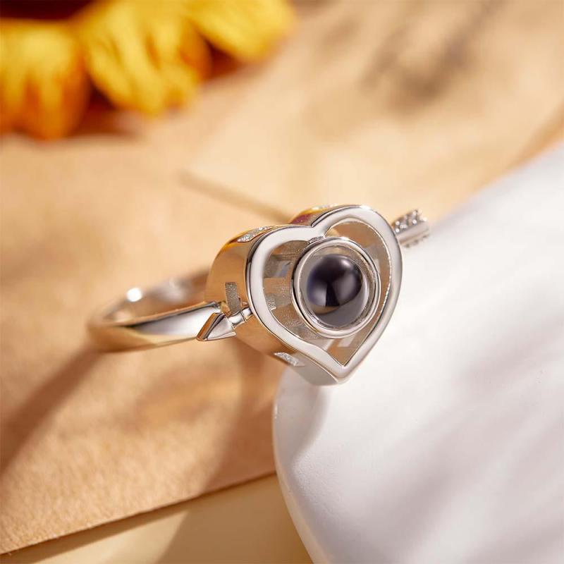Custom Photo Projection Rings Arrow Through Heart Couple Gifts