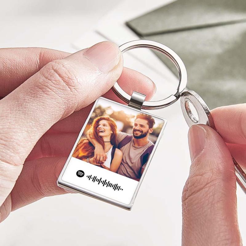 Custom Photo Spotify Code Calendar Keychain Personalized Date Scannable Music Code Keychain Anniversary Gift