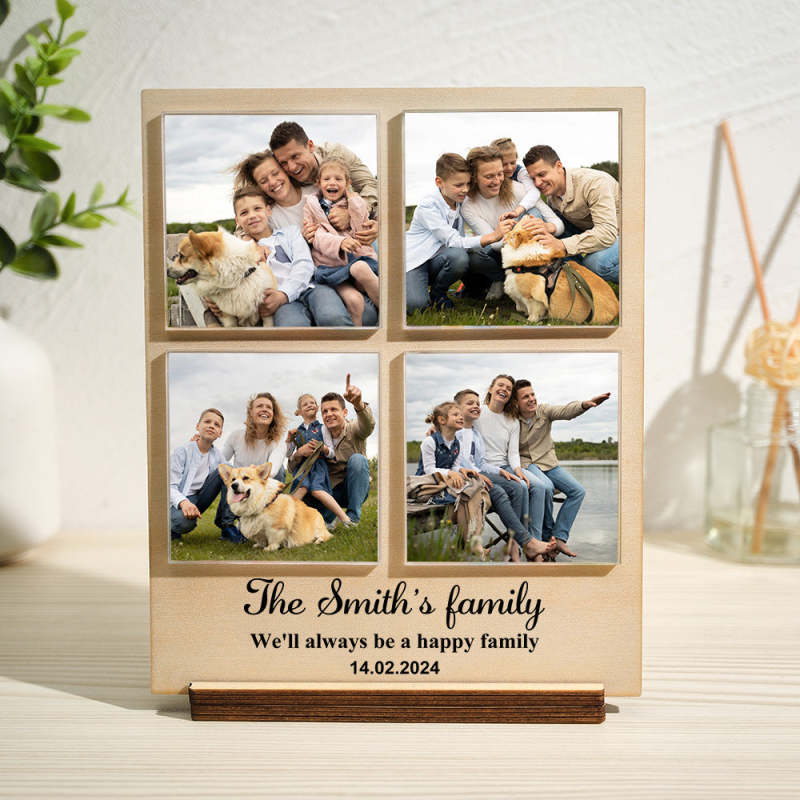 Custom Photo Wood Frame with Personalzed Text 1-4 Photos