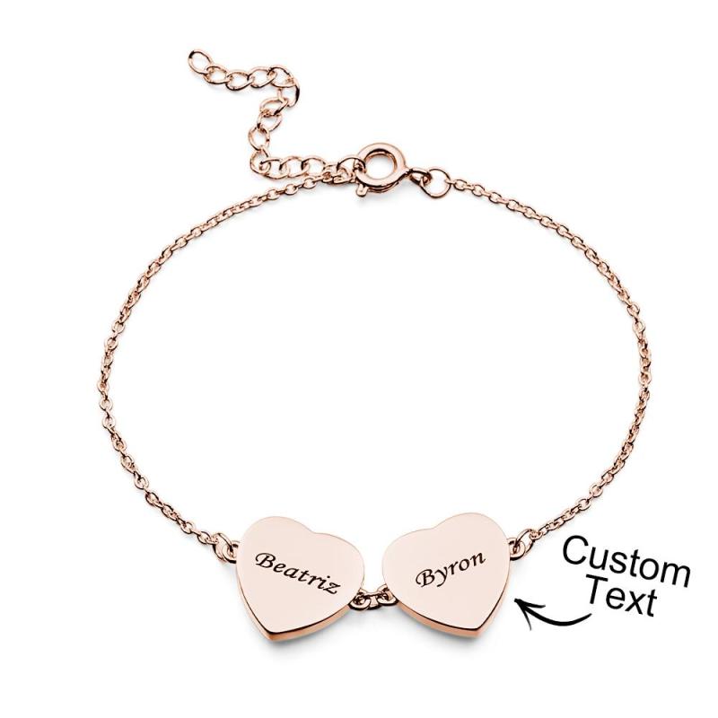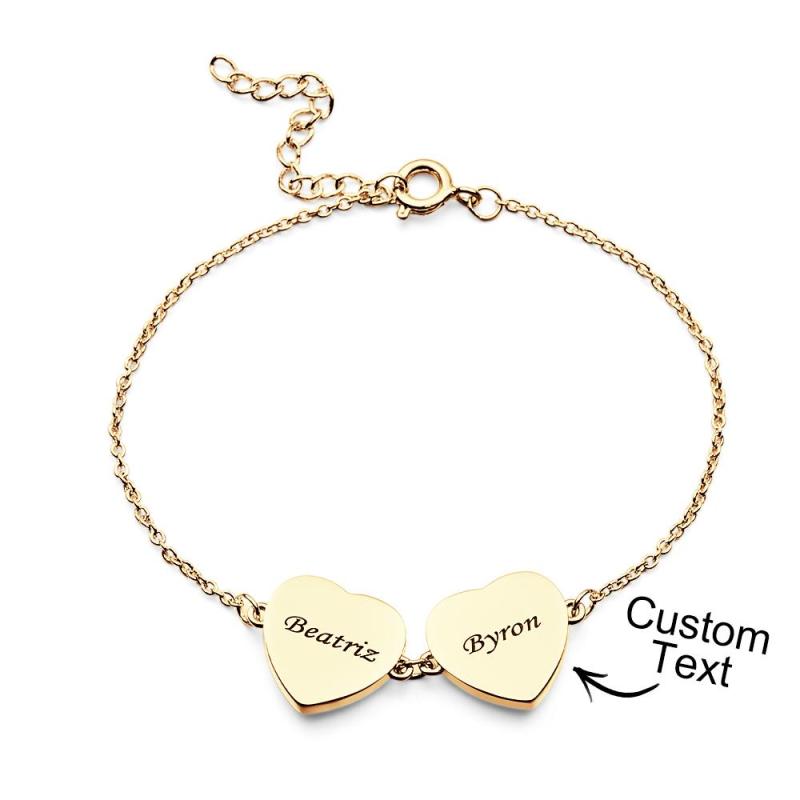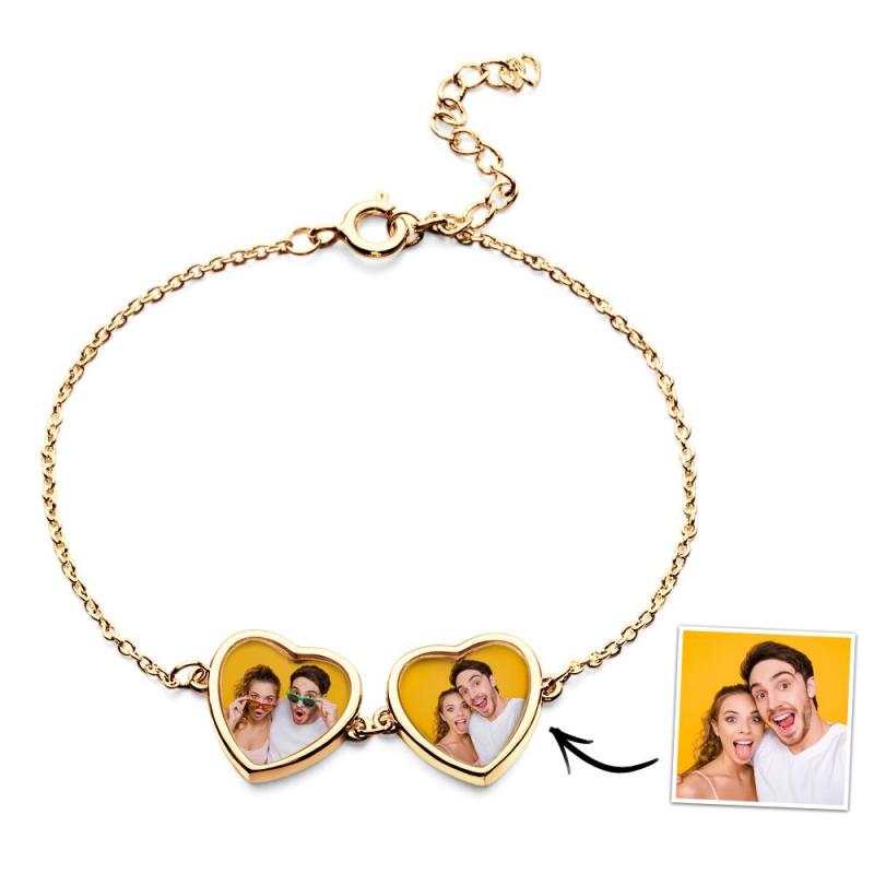 Custom Photos Bracelet Two Hearts Connection Bracelet For Couples