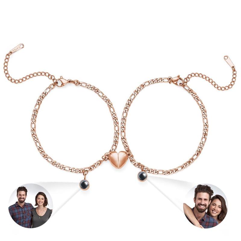 Custom Projection Bracelet Couple Magnetic Heart Gift for Couple