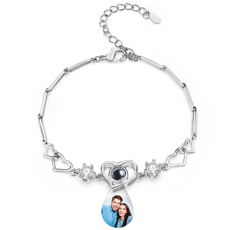 Custom Projection Bracelet Heart Couple's Memories Engravable Bracelet For Her