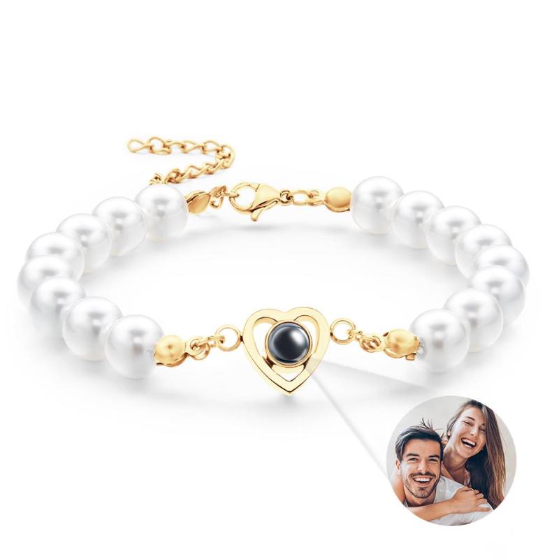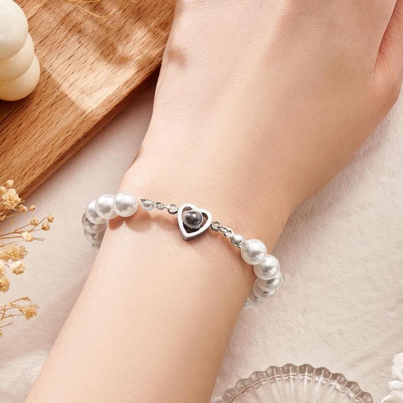 Custom Projection Bracelet Heart Pearl Gift for Her