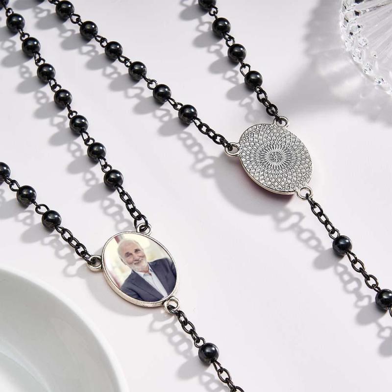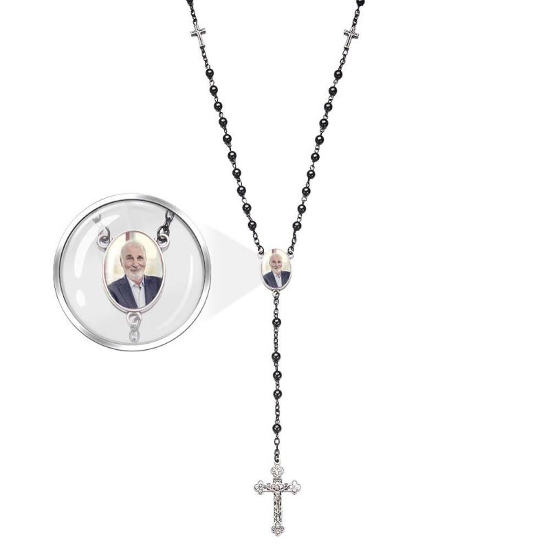 Custom Rosary Beads Cross Necklace Personalized Black Gallstone Cross Necklace with Photo