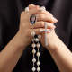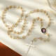 Custom Rosary Beads Cross Necklace Personalized Golden Rose Beads Necklace with Photo