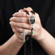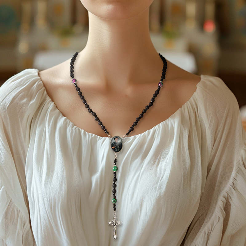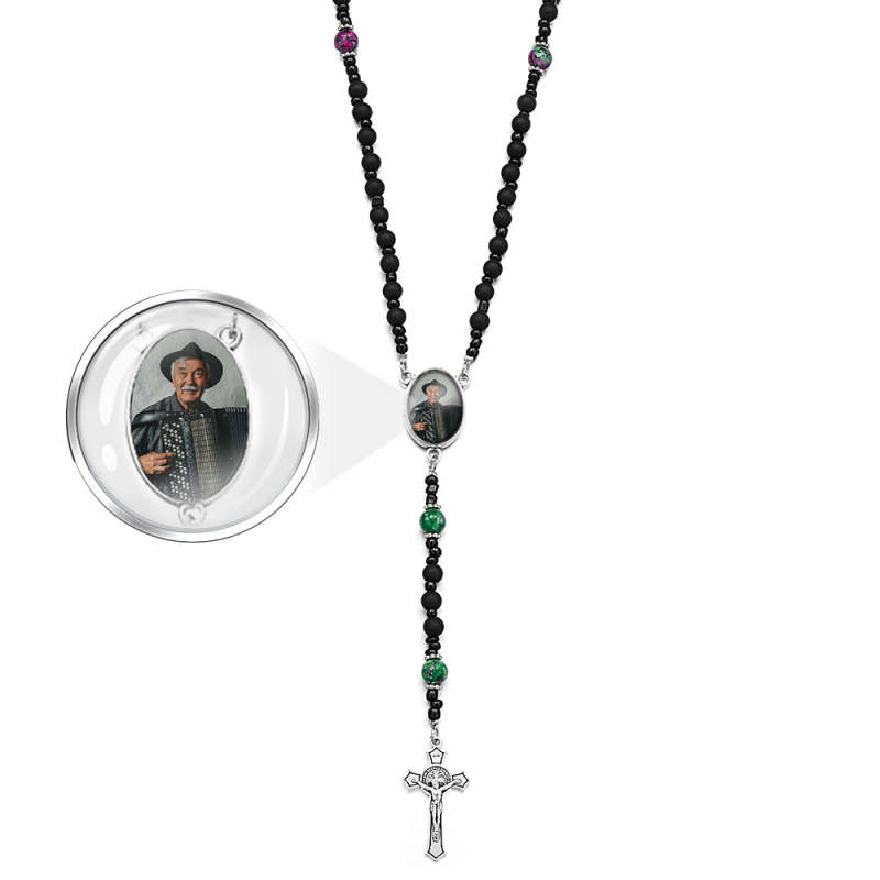 Custom Rosary Beads Cross Necklace Personalized Pattern Black Imitation Agate Necklace with Photo
