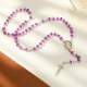 Custom Rosary Beads Cross Necklace Personalized Purple Flat Beads Necklace with Photo