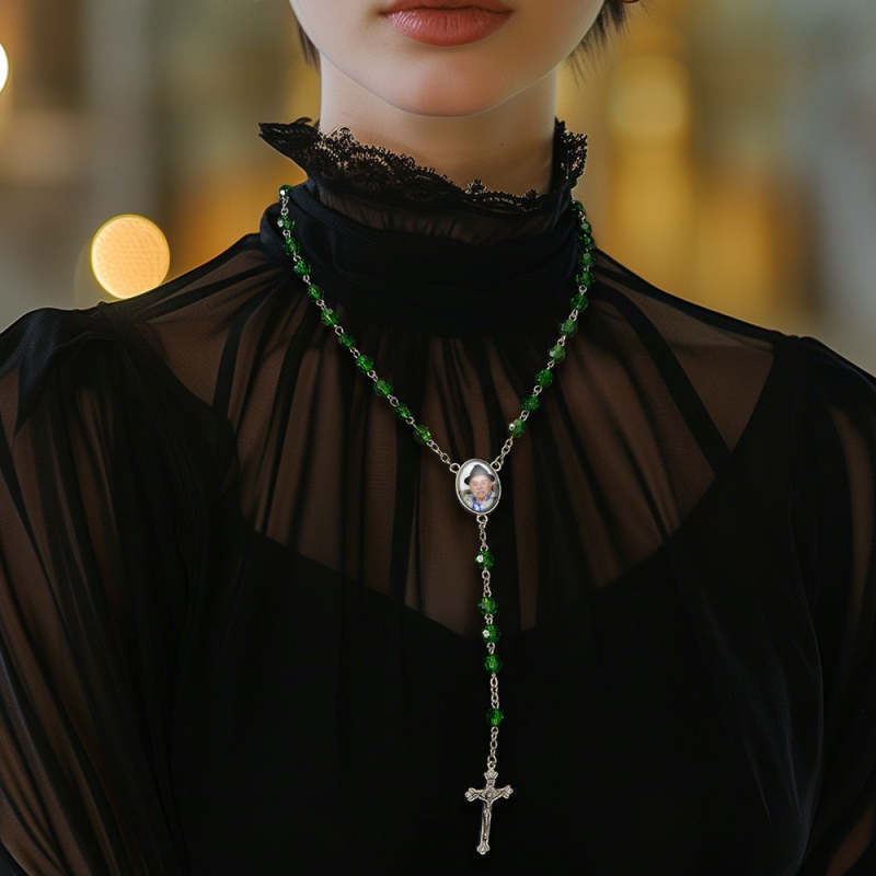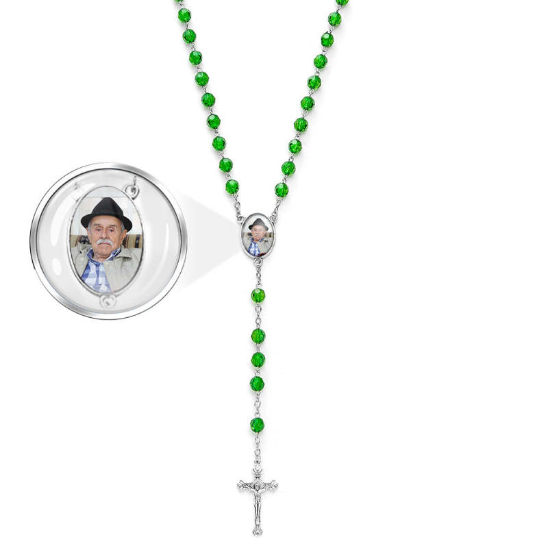 Custom Rosary Beads Cross Necklace Personalized Retro Style Handmade Bead Chain Necklace with Photo