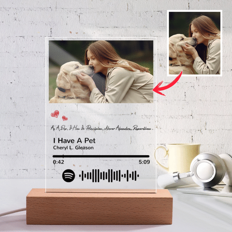 Scannable Spotify Code Night Light Photo Engraved Acrylic Pet Theme Gifts
