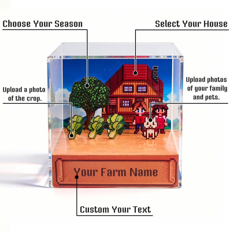 Custom SDV 3D Diorama Cube Personalized The Valley Pixel Scene Cube Gamer Gift & Home Decor