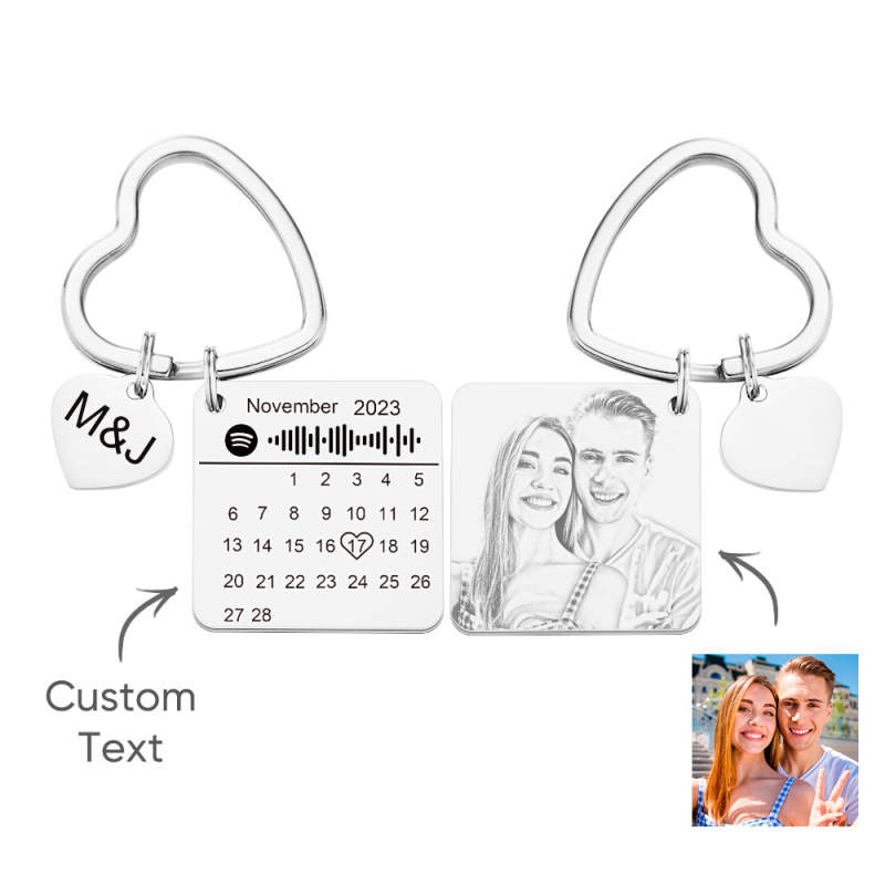 Custom Spotify Calendar Custom Calendar Photo Keychain Anniversary Gifts Heart Shape Keychain Couple Gift