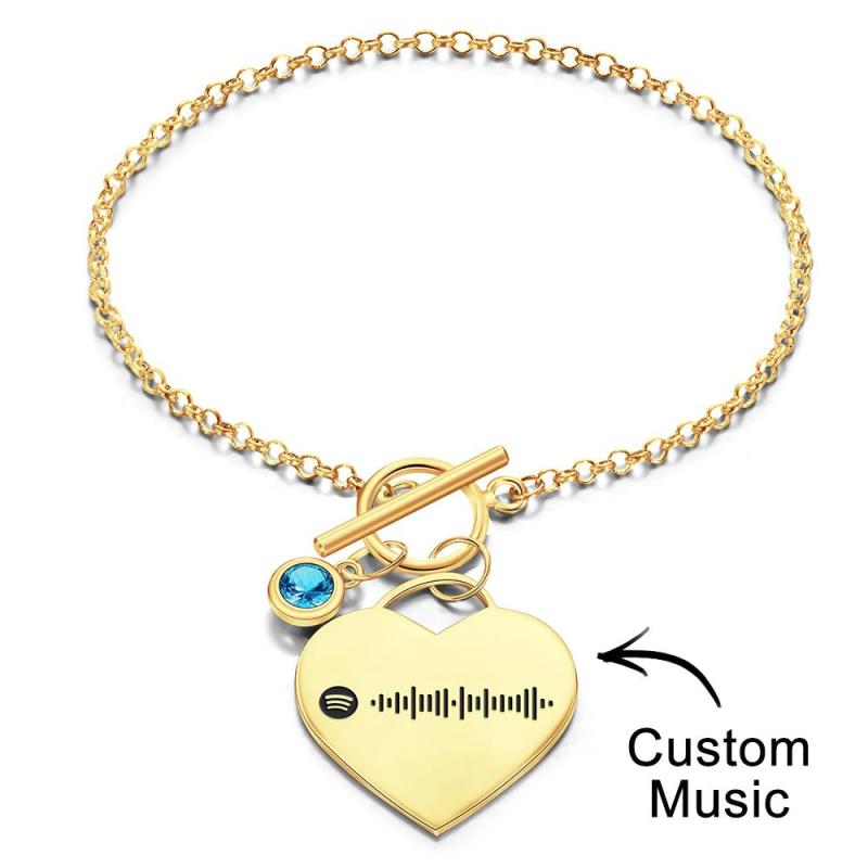 Custom Spotify Code Heart Bracelet with Birthstone Creative Gift for Women