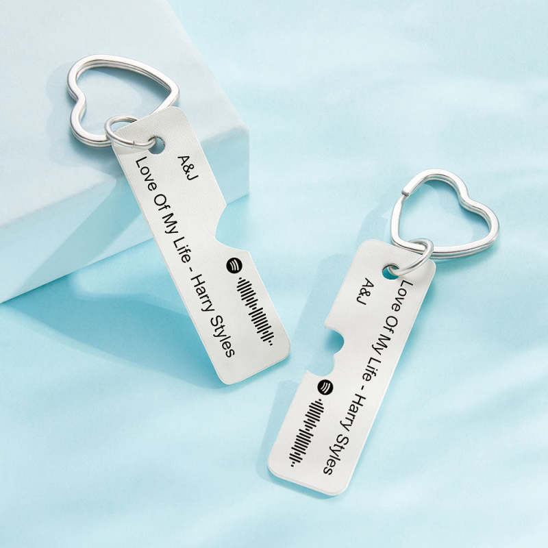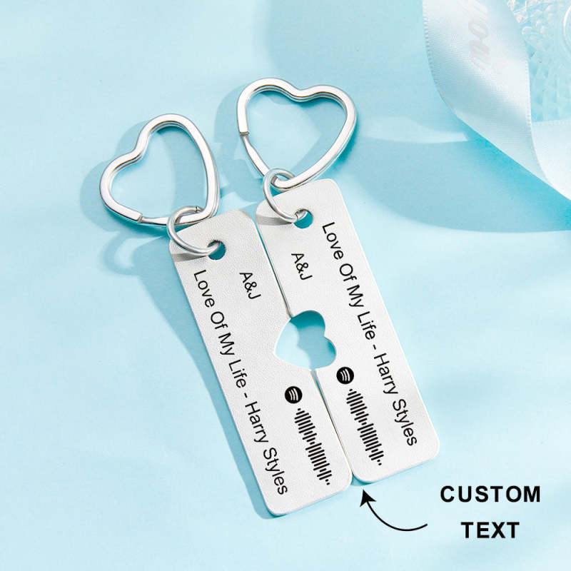 Custom Spotify Code Keychain Personalized Engraved Pair of Leather Keychain Gift for Her